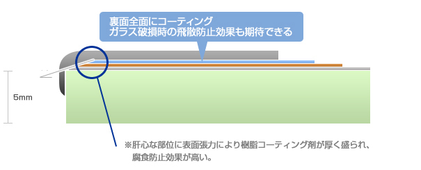 • 裏面の保護塗料が紫外線に対して密着度が高いものを塗布しているミラー