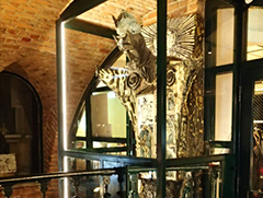防犯と紫外線カットによる造形物の保護、美術館のような作品価値を上げるガラスにすべく低反射合わせガラスを使用しました。